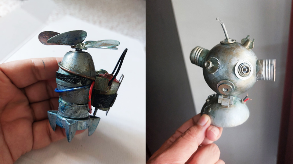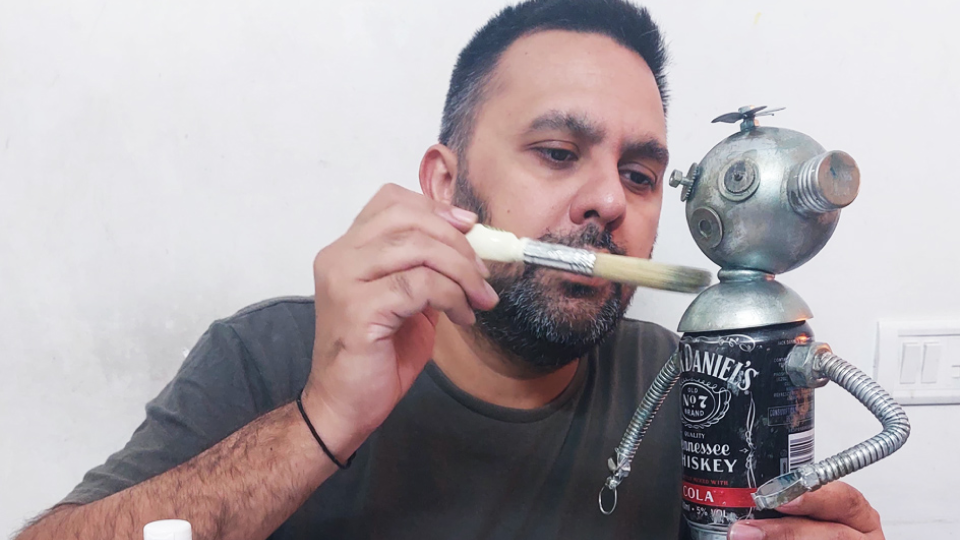 The sleek body robot consists of several tiny parts of wrist watch, laptop washers nuts and more but it’s the tin-can that holds Jack firm. (Food for thought : It takes 80-100 years to fully decompose an aluminium can)