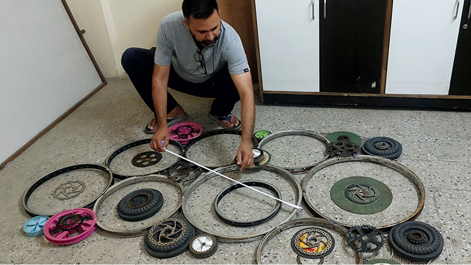 This large-scale installation for Yantra Live, Bangalore was crafted using over 20+ kg of scrapped materials, some of which I had been collecting for more than a decade. Bicycle gears, baby tramp wheels, tricycle parts, toy fragments, mixer-grinder components, e-waste, and everyday discarded objects came together to form a single cohesive artefact each piece carrying its own past, now contributing to a larger purpose.